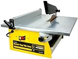 | Trying to renovate a bathroom or kitchen that utilizes ceramic tile, terra cotta, quarry marble, or stone in the design can be a frustrating process. Use the Pro-Series 7-Inch Bench Top Tile Saw to cut the tile right the first time and reduce breakage. Even if you only have a single project to complete, using the Bench Top Tile Saw will save you money, time, and frustration. The Bench Top Tile Saw cuts tile that measure up to 12-Inch wide and 1-Inch thick. The 15-1/2-Inch x 15-Inch cutting table tilts from 0 to 45-Degree for bevel and angle cuts. Use the water reservoir tray for material that requires wet cutting. A 7-Inch diamond blade is included so the Tile Saw is ready to use right out of the box. ...Read